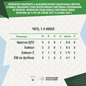 Первенство Сибирского и Дальневосточного федеральных округов в рамках зонального этапа всероссийских спортивных соревнований по футболу «Первенство среди команд спортивных школ»(мальчики не старше 2012 года) сезона 2025г.