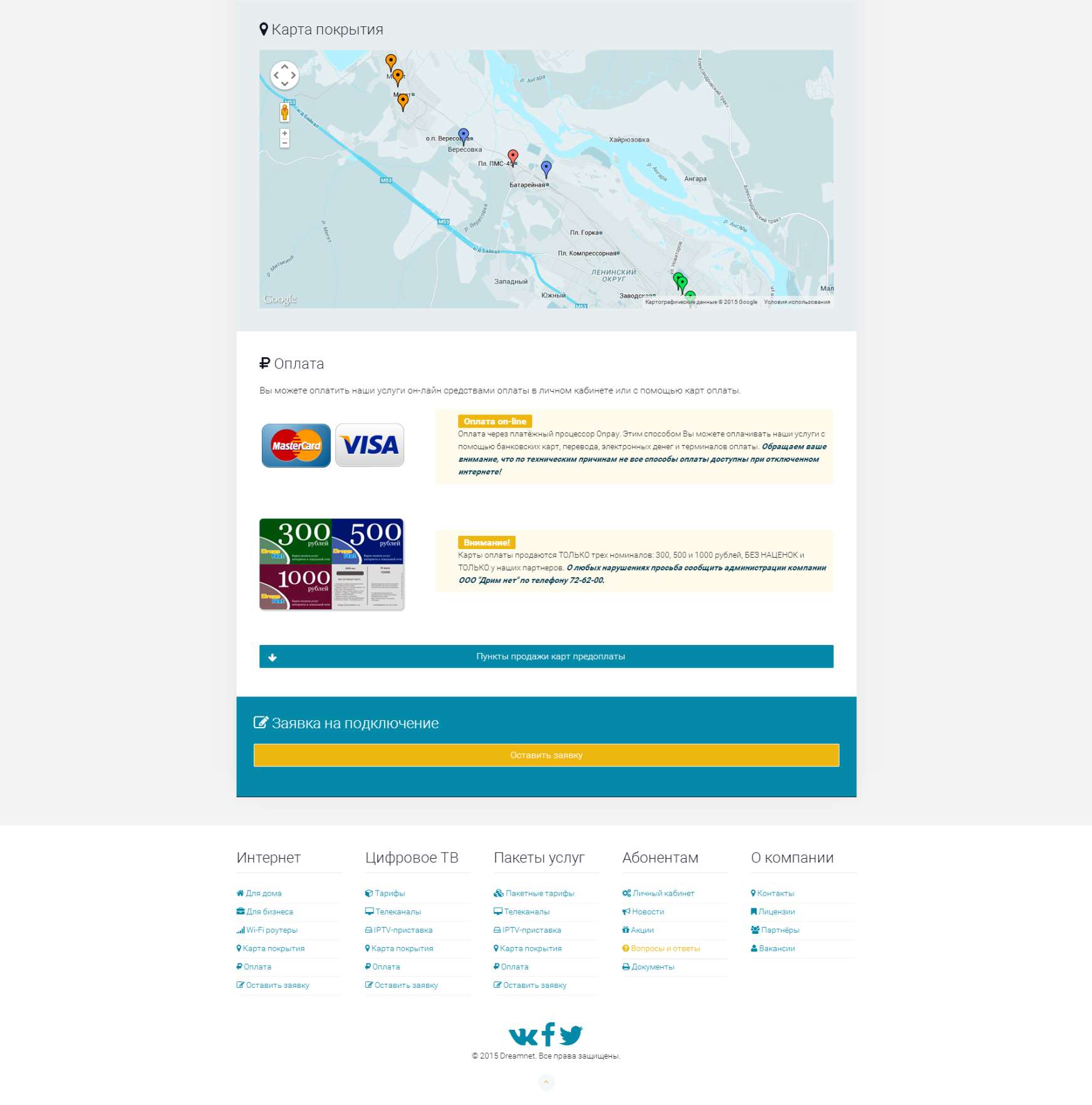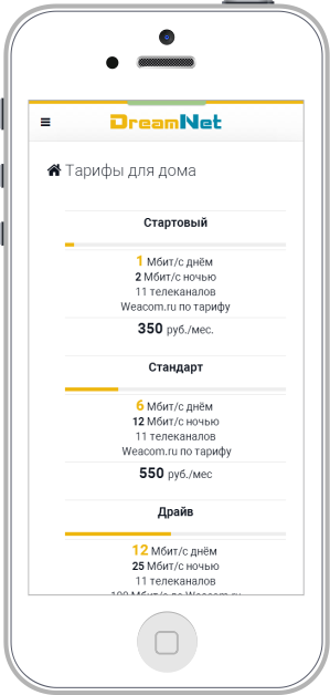 Dream Net - сайт интернет провайдера